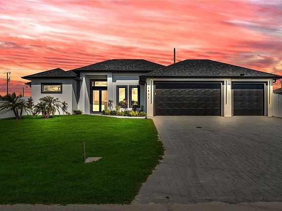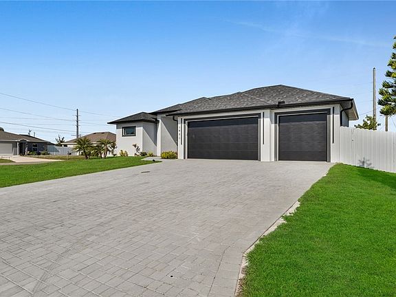 “Discover a luxurious modern retreat—your Florida dream home brought to life. This brand-new residence sits on an oversized corner lot with city water and sewer, showcasing clean contemporary architecture, 4 spacious bedrooms, 3 elegant baths, and a desirable 3-car garage. Inside, enjoy quartz countertops in the kitchen and bathrooms, soft-close cabinetry, stainless steel appliances, upgraded lighting, fans, and fixtures, along with tray ceilings in the Great Room, tile flooring throughout, and generous walk-in closets. The primary suite features dual sinks, a walk-around shower, and a freestanding tub for a spa-like experience. Step outside to a seamless indoor-outdoor lifestyle with a sparkling pool, an expansive paver patio, a stylish outdoor kitchen, and a large paver driveway offering plenty of parking. A rare blend of modern design, comfort, and exceptional value.”