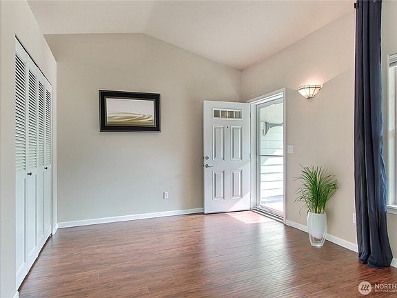 Gas fireplacePrimary suiteAttached bathDouble closetsNext to clocktower parkLaminate flooringVaulted ceilings
