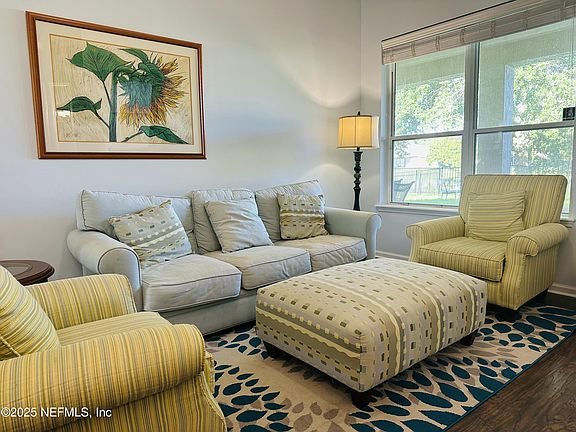 Expansive 70' WATERFRONT lot with 3-CAR GARAGE in sought-after Bartram Springs! This 5 bedroom, 4 bath home includes a private OFFICE & upstairs BONUS suite. Filled with natural light, the open layout features soaring ceilings, custom trim, and a family room with fireplace and built-ins. The chef's kitchen offers 42'' cabinets, island, walk-in pantry and tile backsplash. Relax or entertain on the extended covered lanai overlooking peaceful water views—where you can enjoy stunning sunsets every sunny day. The primary suite boasts a tray ceiling and spa-style bath with dual sinks, jetted tub, and dual-head shower. Walk to resort-style amenities—pool with slide, new fitness center, tennis, basketball, sand volleyball, fire pit, and on-site elementary! Plus, enjoy neighborhood favorites like Food Truck Fridays just around the corner. Minutes to Durbin Park shops & dining—this home truly has it all!