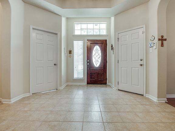 Beautiful mature Live Oak welcomes you to this upgraded Newmark built home in a gated community. This gently lived-in one story home features Mohawk Wood Floors, upgraded 5 Burner Gas Cooktop, SS Double Ovens, Covered Patio, Large Backyard w/ Greenbelt Access. Current homeowner added crown molding, extensive tile throughout, solar screens and water softener just to name a few. Roof & Gutters replaced 2016. 4th Bedroom can be used as office/study. Very open floorpan with plenty natural light.