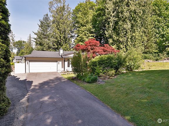 Move-in ready darling rambler located in a quiet cul-de-sac just a quick walk to charming Duvall! Completely updated from top to bottom w/over 115k in upgrades, this sunny & bright home welcomes you w/fresh int. paint, updated doors & white trim package, walnut hardwoods, beautiful new kitchen w/white cabs, quartz counters & island, SS applcs, garden window, oversized primary bdrm, colorful sunny yard w/fruit trees & blueberry bushes! New roof & ext paint in 2019, furnace & heat pump/air cond. 2020, windows & blinds 2020, hot water heater & washer/dryer 2024; nothing to do but move in & enjoy! Spacious .32 acre prvt yard backs to greenspace, deck for coffee or evening gatherings, 2-car garage w/built-in cabs & lights, gas heat, perfect!