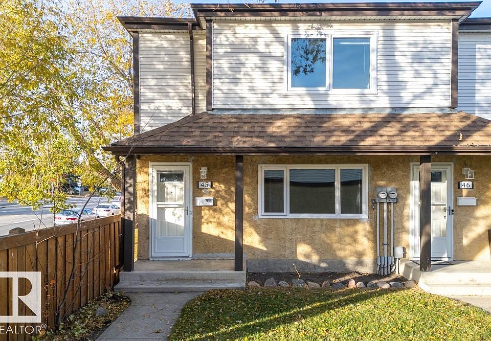 ELEGANTLY RENOVATED & MOVE-IN READY – Welcome to Unit 45, a beautifully finished END UNIT that balances STYLE and COMFORT in a well-managed community. This home has been UPGRADED from top to bottom with NEW FLOORING, FRESH PAINT, CONTEMPORARY CABINETRY, DESIGNER LIGHTING, and STAINLESS-STEEL APPLIANCES, creating a REFINED, TURN-KEY space. The bright main floor offers an inviting layout ideal for everyday living and entertaining, featuring a welcoming living area, sunlit dining space, and a kitchen with great storage and workspace. Step outside to your PRIVATE PATIO—perfect for morning coffee or evening unwinding. Upstairs, the SPACIOUS PRIMARY BEDROOM provides a relaxing retreat, complemented by two additional bedrooms and a beautifully finished 4PC bath. The FINISHED BASEMENT extends your living area with a COZY REC ROOM, LAUNDRY, and STORAGE. With TWO ASSIGNED PARKING STALLS and a QUIET END-UNIT LOCATION, this home offers a STYLISH, LOW-MAINTENANCE LIFESTYLE close to PARKS, SHOPS, and TRANSIT.