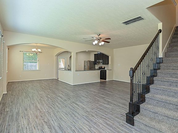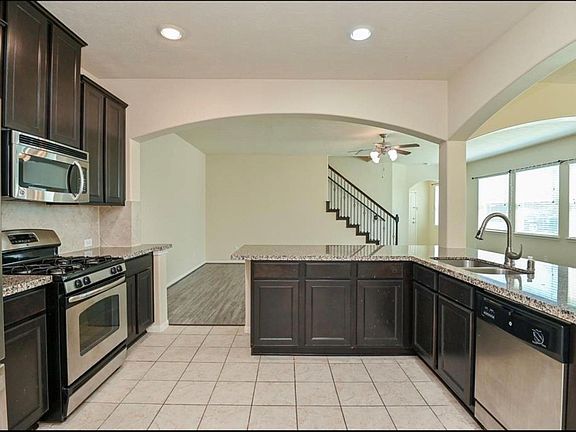 Courtesy of Kiani Realty Extremely clean and move-in ready, this charming 3-bedroom home offers a spacious layout with an open kitchen featuring granite countertops and stainless steel appliances. The primary bedroom upstairs boasts high ceilings and a walk-in closet, while a cozy loft/game room adds extra living space alongside two generously sized secondary bedrooms. Enjoy a nicely sized backyard, plenty of natural light, and front landscaping maintained by the HOA. Additional features include a sprinkler system, community pool access, and proximity to parks, shopping, and major highways (290, Hwy-6, Beltway 8). Schedule your showing today!