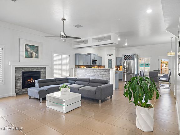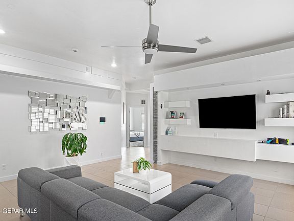 Slick and modern home in El Paso's East side. This home has been updated inside and out. From the fresh look on the outside to the welcoming living open concept living area with high ceilings and unique accents. Featuring updates throughout the home the 3 bedroom 2 bath will feel almost like a new home. In the back you will find a fully finished landscape with an outdoor kitchen and fire pit area. Ready for the summer.