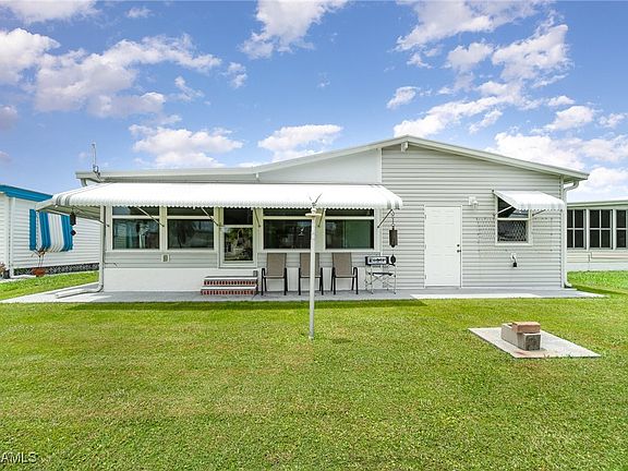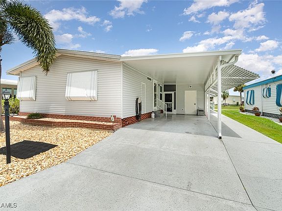 Here's your chance to get into a great waterfront community and enjoy a fabulous & fun costal life style at a great price. This home had no damage or water intrusion from Hurricane Ian and has been lovingly maintained by the original owner for 28 years. Nice laminate flooring throughout with tile in the kitchen. Fully windowed lanai with free standing ac unit to keep you cool, and slider to the kitchen. You will be amazed with the storage in this home, including a shed off the carport that has extra storage above, more storage in lanai and a huge storage room with electricity on side of home. The home has skylights that brighten it up and laundry is off the kitchen so it's convenient. The main living area is large and open for easy entertaining and the bedrooms are separated on either side of the home, and comes fully furnished so just move your personal belongings in and start living your best life. The AC was replaced in 2020, windows replaced in 2015 and the entry doors were replaced with Larson doors. All of this and a golf cart is included!!! Have a boat? Then the access to the Caloosahatchee River and the gulf will make your day.