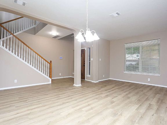 Spacious 4 bedroom; 2.5 bath home in 3235 sq.ft. Open floor plan; spacious living room; island kitchen granite counter tops; custom cabinets; second floor loft. All bedrooms upstairs. Ceramic tile & wood-look vinyl on 1st floor. Carpet on 2nd floor. Primary bedroom is split from others. The spacious en-suite includes, bathroom w/double vanities, and separate garden tub & shower. Large walk-in closet. Backyard features covered patio and privacy fence. Just down 1604 from La Cantera Shopping & Fiesta Texas