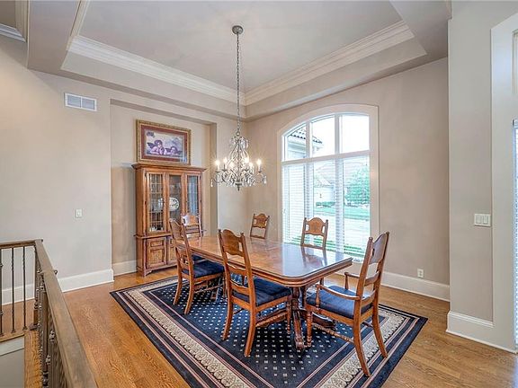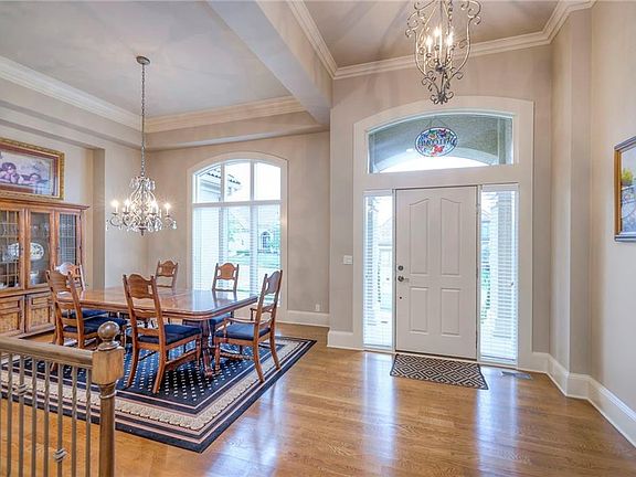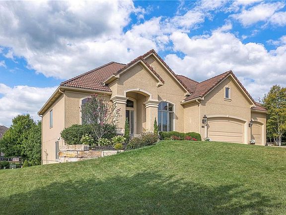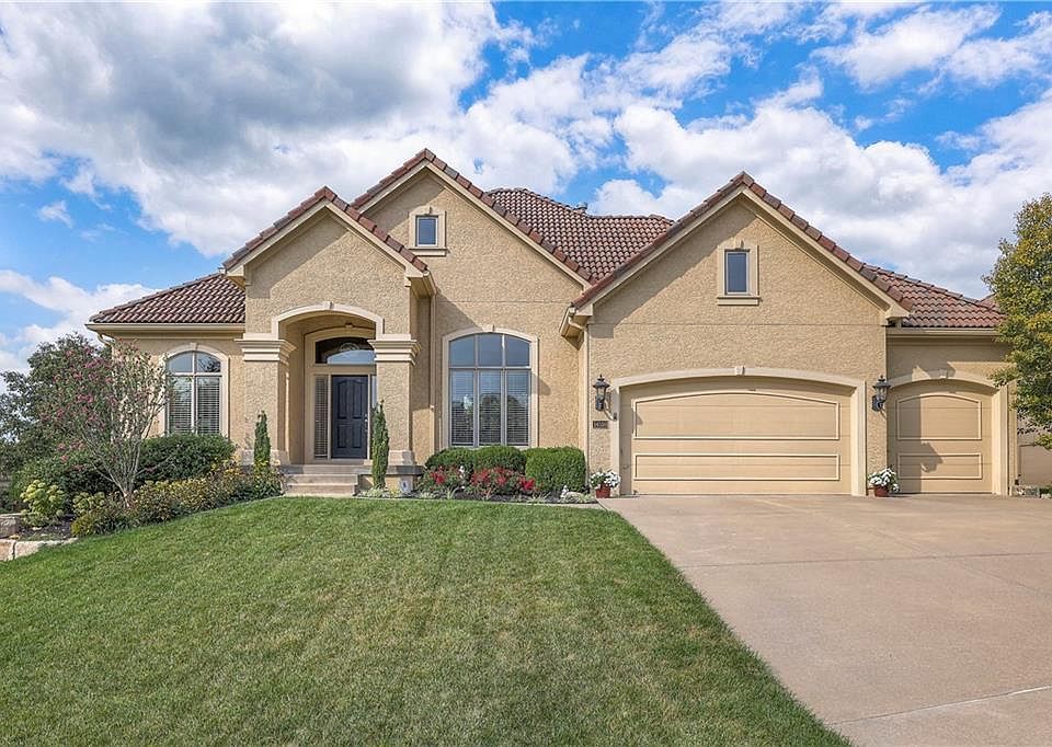 Discover your dream home in Deerbrook! Lush landscaping welcomes you to this gorgeous, well-maintained Don Julian Reverse 1.5-story. This beautiful walk-out home offers 4 bedrooms, 3.1 bathrooms, and a 3-car garage. Step inside and experience quality craftsmanship throughout — soaring ceilings, abundant natural light, and gleaming hardwood floors create an inviting, open atmosphere. The thoughtfully designed floor plan flows effortlessly, making everyday living and entertaining a joy. Enjoy a formal dining room, a lovely living room with floor-to-ceiling windows and a fireplace, and an eat-in kitchen featuring rich cabinetry, a center island, gas cooktop, and built-in desk/office space. Large primary suite with hardwood floors, double vanity, walk-in shower, jacuzzi tub, and walk-in closet with washer/dryer hook-up for added convenience. The walk-out lower level is ideal for guests or family, offering a large family room with a built-in bar, three generously sized bedrooms, two full baths, and a second laundry room. Relax and unwind outdoors on the deck with pergola or the lower-level patio — both overlooking the peaceful backyard. Enjoy community amenities including a neighborhood pool and scenic walking trails. Located in the award-winning Blue Valley School District and just minutes from top-rated schools, shopping, dining, entertainment, and highways — this home truly has it all!