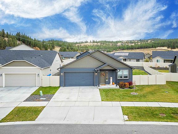 OPEN HOUSE CANCELLED! PENDING.Better than new construction.This beautifully designed, single-level home offers comfort, style, & practicality. On a fully fenced 0.25-acre lot, the property boasts a well-landscaped yard w/a stunning retaining wall & rock beds. Place for a fire pit. The spacious main level features an open kitchen equipped w/ extensive granite countertops, ample cupboard storage & a breakfast bar, making it a chef’s dream. This space flows seamlessly into a large living room & adjacent dining area—perfect for entertaining.The primary bedroom is a retreat of its own, w/ a walk-in closet, double sinks, & a walk-in shower. A sliding door opens from the kitchen area to a covered back patio, ideal for BBQs & relaxation. All appliances included. A roomy 2-car garage, offering additional storage for recreational gear.Located in a desirable neighborhood, this property is close to the Spokane River, Centennial Trail, and Mirabeau Park, offering easy access to outdoor activities. Thoughtful touches