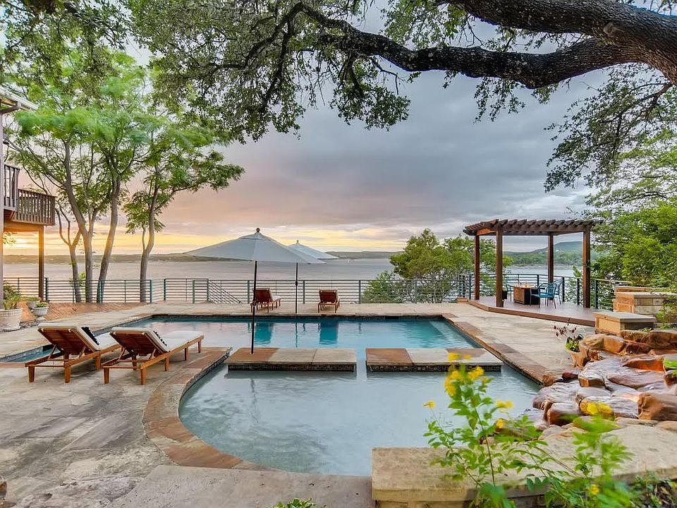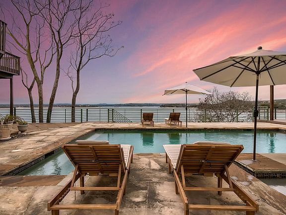 Perched on .66 acres above Lake Travis' deep, open waters. This privately gated waterfront residence, with direct water access, and ability to build a boat dock is an extraordinary, lake lover's opportunity. Makes an exceptional primary residence, vacation rental, or an incredible value-add investment as a remodel and/or addition. Single story primary living and a separate guest house is perfect for multi-generational living and a multitude of lifestyles. Zoned to great schools, low tax rate, and no HOA.