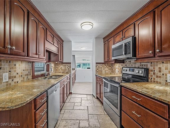 All-weather lanaiGranite countertopsStunning upgradesTravertine stone floorsHigh-end appliancesGlass tile backsplashUnder-cabinet lighting