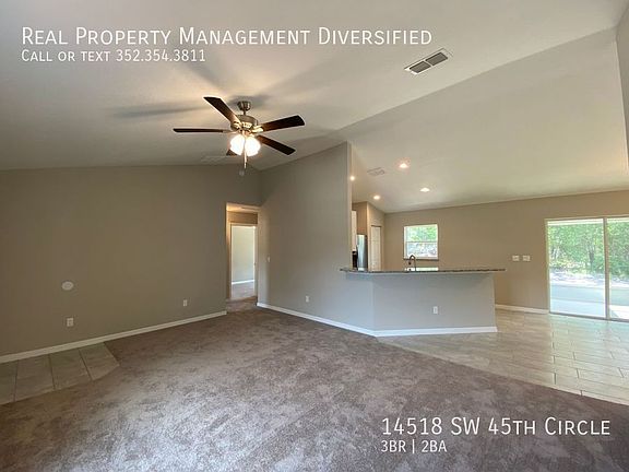 Live in this Beautiful Home in a desirable SW Ocala neighborhood. Home offers a spacious split plan with cathedral ceilings in the living room and kitchen. Kitchen design features, stainless appliances with stunning granite countertops to complement the upgraded wood cabinetry featuring self-closing drawers and doors! You will enjoy entertaining in this kitchen with its eight foot serving counter and sliding door leading to attached screen enclosed lanai! Master bedroom is spacious and features walk in closet with a custom tiled master bath and wood cabinetry with granite counters! All wet areas are tiled in 18x18 ceramic tile with carpeted living areas. Two car garage boasts painted interior, epoxy flooring. All RPM Diversified residents are enrolled in the Resident Benefits Package (RBP) for $39.95/month which includes renters insurance, credit building to help boost your credit score with timely rent payments, $1M Identity Protection, HVAC air filter delivery (for applicable properties), move-in concierge service making utility connection and home service setup a breeze during your move-in, our best-in-class resident rewards program, and much more! More details upon application. Non-Smoking Home. Renter's Insurance is required! First and Security required to Move-In, $150 Lease administration fee, additional fees required! Our property offers deposit-free leasing using Obligo billing authorization technology (for qualified renters). Available with no security deposit with Obligo! There are restrictions on pets, if pets are allowed, there will be additional fees required. By applying to lease with Real Property Management Diversified you will have to create either a pet/animal profile or a no-pet profile using our firm's third-party screening service. Click here https rpmdiversified. org it is a scam.