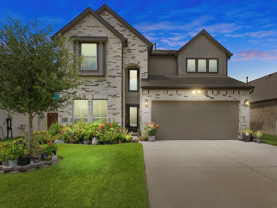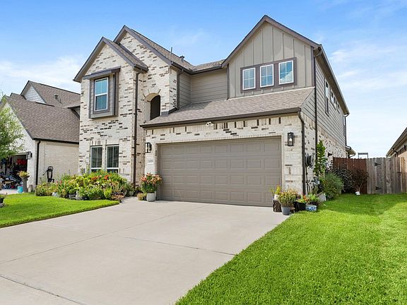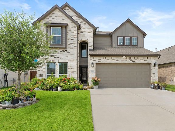 Discover this stunning 5-BR, 4-BA two-story home featuring modern elegance and functional design. A formal dining room just off of the kitchen. The open-concept kitchen seamlessly connects to the spacious living room. The kitchen boasts granite counters, a large island/breakfast bar, gas range, pantry, and stainless steel appliances, making it a chef’s dream. The living room’s soaring ceilings and abundant natural light create a warm, inviting atmosphere. The primary suite on the first floor features an ensuite bath with a soaking tub, separate shower, dual sinks, and a walk-in closet. An additional bedroom and full bathroom on the first level add convenience. Upstairs, enjoy a versatile second living area, plus three more bedrooms and two full bathrooms. Outside, relax on the covered patio in the fully fenced backyard, perfect for outdoor entertaining and play. This home combines elegant features with practical spaces, making it ideal for comfortable living and entertaining.