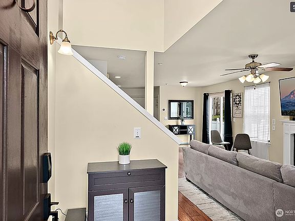 Come on in! Covered front porch welcomes you home bringing you into open concept living space with gas fireplace. Peninsular counter w/eating bar in Kitchen with stainless appliances (all stay) and double sink. Ceiling fans, recessed lighting. Vaulted ceilings grace the sizable Primary Suite completed with walk-in closet & private bath. Two additional beddrms. Tucked away on corner lot, fenced yard with patio provides outdoor enjoyment without the hassle of hours of weekly upkeep (HOA maintains front lawn & landscaping). Relish in Dupont's small town feel while having all amenities at your fingertips: food, entertainment, parks & more. Moments to I-5 for commuting and less than 5 mins to JBLM access. House is freshly roofed in 05/2024 and multiple new modifications.