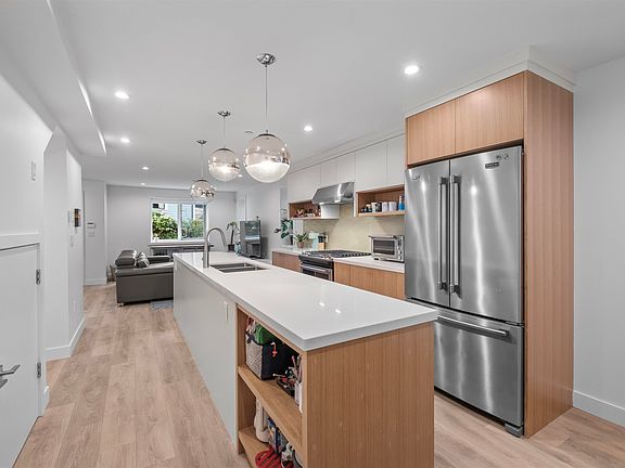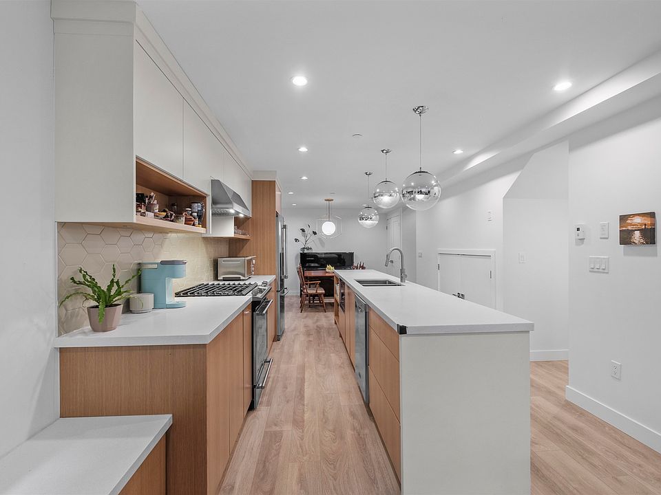This rare two-level half duplex delivers – spacious & functional interior layout, private yard, modern design, charming curb appeal – all in one of Vancouver’s most loved neighbourhoods. Unlike the 3–4 level designs that chop space into tight floors, the 900+ SF main floor gives big living & full dining anchored by an enviable kitchen with 13’ island! 4 bedrooms (2 ensuite) + 3 bathrooms, this back-unit works for big families or multi-generational living. Built by award-winning VictorEric, enjoy design-forward style, radiant in-floor heating, detached garage, and a sunny south-facing yard. Built in 2019 (4 years left on warranty) on a quiet tree-lined street in Cedar Cottage, just steps to cafés, restaurants, groceries, transit, & within walking distance to Tyee & Lord Selkirk Elementary.