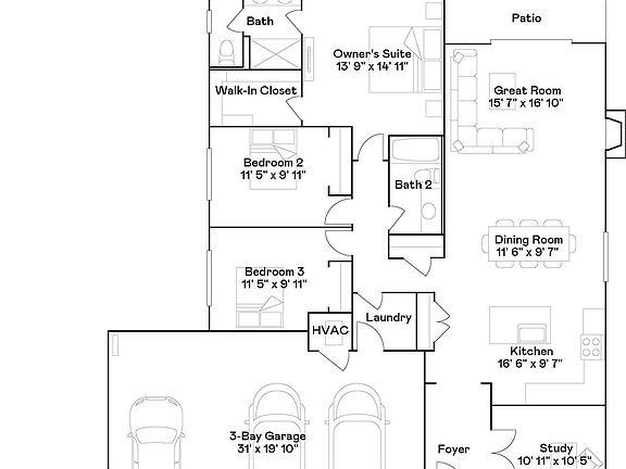 Move-in ready now! The Trenton, darling bungalow-style 3 bed/2 bath home with 3-car garage. Den/office at entry offers french doors & separation from bedrooms. Kitchen offers quartz counters, island with sink, stainless gas 5-burner range. Kitchen open to living room with cozy gas fireplace. Laminate flooring in entry, kitchen, and dining room. Covered front and rear porches. Tankless hot water heater. Full landscaping front/rear yard with UG sprinklers as well as fencing! Open Saturday and Sunday 12-4 or come to the model 11-6 to view all of our completed homes.