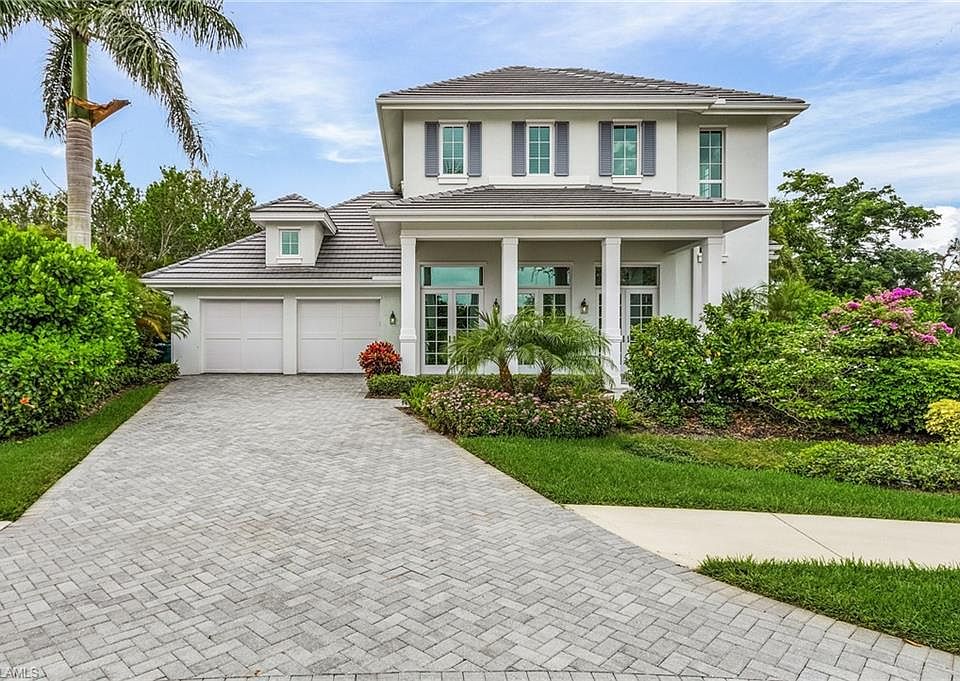 Rarely available Borelli Construction custom home in quiet gated community of Hemingway Place. Transitional high-end finishes throughout include custom European style cabinetry, marble tile in the baths, durable wood look tile, Wolf/SubZero appliances and home automation. The two story foyer lets in beautiful sunlight and leads to the great room complete with custom TV built-in. The primary suite is conveniently located downstairs and features separate closets, two vanities, an oversized bedroom and window seat. The covered lanai has shell stone pavers, a striking stained cypress ceiling, full outdoor kitchen, and retractable screens. Upstairs you'll find a loft area, three bedroom & bath suites, a morning bar for guests, and an air-conditioned bonus room. Mature landscaping and brand new whole house generator complete the home. Hemingway Place is centrally located within Naples and close to beaches.