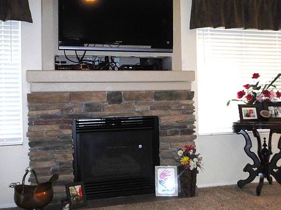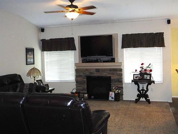 Enjoy this open floor plan, great room complete with surround sound, vaulted ceilings & attractive stone faced FP w/gas logs. The light & airy office area can be used for school work area or formal dining room. Kitchen features Corian counters & new stainless GE gas R/O, breakfast bar is great for friends & entertaining, slider to patio & bbq area. Owners suite features large walk-in closet, slider to 2nd patio area, bath with separate shower and tub + his & her sinks, tiled floor. Split floor plan, guest bath has shower-over-tub, tiled counters & tiled floor. Raised white panel doors throughout, hot water heater new in 2016, AC unit new in Sept 2015. Security screen on front door. Timed sprinklers F&B, new east side fence in 2019. West side has 10' side yard with 12' gate for possible RV parking behind gate with 9.6x35 cement slab, storage shed stays. Move-in ready!