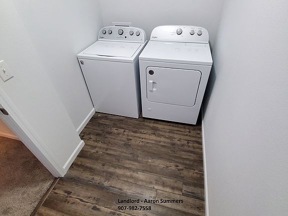 Gorgeous newly built 3 bed/2.5 bath townhouse in a fourplex layout located one mile from Wasilla off of Wasilla Fishhook Rd. Amazing trees/mountain views! Southern exposure for sunny days. Small backyard area and deck. Spacious living room, beautiful kitchen with laminate countertops, stainless steel appliances, island with raised bar, dining area with slider to rear deck. Brushed nickel hardware and fixtures. Open floorplan with 8-foot ceilings. 3 bedrooms, 2 full bathrooms, laundry room, and several hall closets located upstairs. Master bedroom with walk-in closet and attached private bathroom. Laminate Vinyl Plank floors on entire first floor, bathrooms, and laundry room. Whirlpool top load Washer and Dryer. Half bath located downstairs. 5- Star Energy appliances and Samsung refrigerator with French doors. Everything is brand new! 2-car garage that is 400 sq ft in size. Walk in closets with built in organizers. Sound proofing installed between each unit. Tenant pays gas, electric, and trash. Tenant pays MEA directly for electric and Enstar directly for natural gas. These units are 5 Star Energy Rated (Enstar Averages $56/month and MEA Averages $72/month) 1,550 Square Feet. No Pets, No Smoking. Please apply and then a walkthrough can be scheduled. Tenant pays for natural gas, electricity, and trash removal. No pets, no smoking. Owner pays for water, septic, and snow removal. 12 month lease. Tenant pays for natural gas, electricity, and trash removal. No pets, no smoking. Owner pays for water, septic, and snow removal.