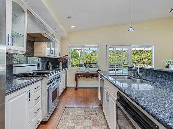 Desirable single-story with a pool! Located in a great neighborhood within walking distance to Guajome Park. Gorgeous kitchen offers large island, pantry, stainless steel appliances, wine fridge, and lots of storage with pull out shelves. The vaulted ceilings with skylight provides a lot of natural light. Beautifully remodeled bathrooms feature stylish tile work. Large backyard with a sparkling pool and spa is great for entertaining or relaxing. No HOA!