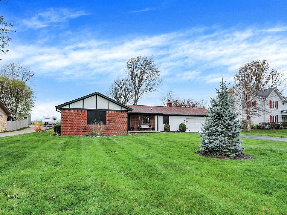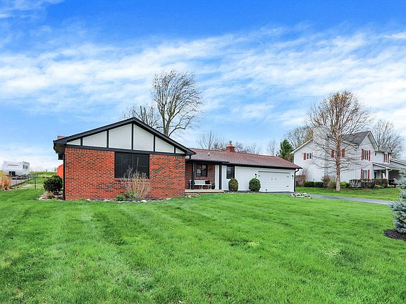 Beautiful one story updated all brick ranch in a quiet country neighborhood. This home features 3 beds, 2 baths, with a spacious living room, kitchen and dining area. The sunroom added to the back of the home features beautiful skylights making for lots of natural light and extra living space. This home is so open and airy. The home backs up to a corn field. Enjoy quiet nights entertaining on your back deck and let the dogs run in the fully fenced yard or cold nights indoors next to your wood burning stove.