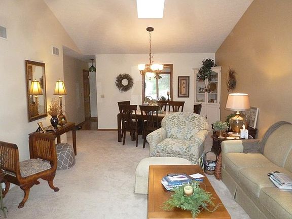 Superior Condo living. Vaulted great room ceiling,skylight. Neutral warm colors, closets, & storage abundant in space. 2 full baths, 3 bedrooms, w/large master. First Floor laundry. Gas fireplace in greatroom, exiting to covered patio/porch. Entertain in huge finished rec room w/half bath plus 2 large storage rooms. Newer Plantation blinds on windows, newer carpet,and laminate flooring in kitchen. 2 car garage. Served by Niles Electric and utilities and is a combination bill covering electric, sewer and water, varies by usage, and garbage every three months for trash is 31.00.