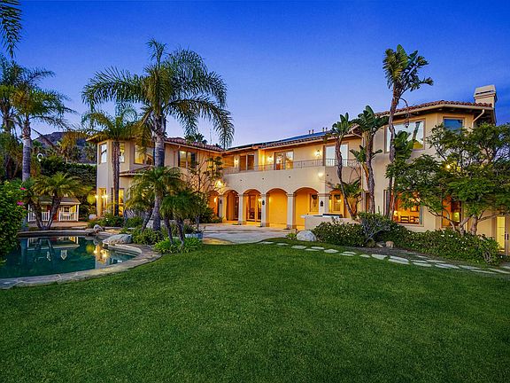 Significant Price Reduction. Magical Mediterranean estate on a quiet cul-de-sac waiting for your fresh look and TLC. Located in the most private, high end gated area within the Palisades (Ridgeview Country Estates). There are 6 Bedrooms all en-suite with an attached Guest Suite off Pool. Large circular Entry, multiple Lounge/Family rooms, richly paneled Office/ Library and amazing Living room that transforms into a Theatre to watch games and movies. Large outdoor entertainment area w grassy yard, lagoon shaped Pool/Spa and OCEAN VIEWS! Featuring Solar panels and 220EV car charger. Minutes to the village, park and ocean. Can be shown immediately.