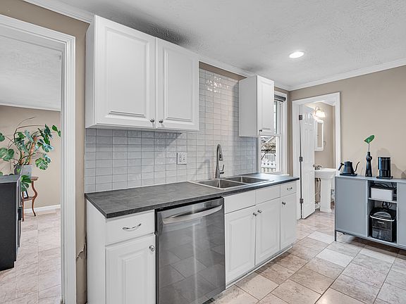 Spacious dry basementStylish backsplashPrivate gravel parking areaInviting front porchUpdated fixturesFresh paintBrand-new carpet