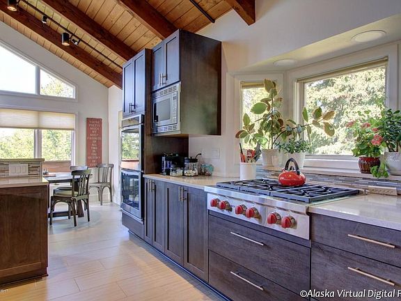 Seclusion-spectacular view-easy access! Gorgeous, professional remodel with significantly oversized garage (plenty for 2 cars and a workshop). Upper end appliances (WOLF cook top, double ovens) gourmet kitchen with lots of storage and large island for entertaining. Huge flat yard with additional space on lower side of lot (access by road) with gate for plenty of storage area for RV/Toys.