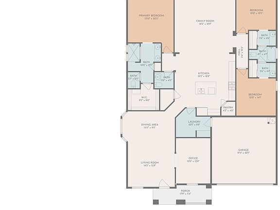 2nd & 3rd bedroom share a jack & Jill bath, each has their own sink.