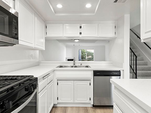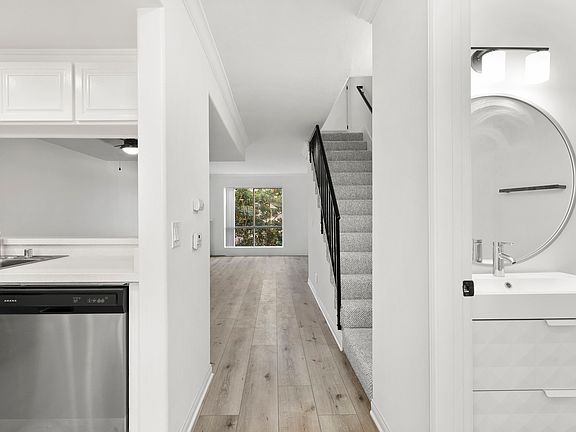 This townhome style multi floor unit is in a small quite complex with easy freeway access to both the 101 and 405. It's in a highly desirable area of Sherman Oaks within walking distance to many fine restaurants and fun things to do. It has been fully renovated with wood look flooring throughout, new double pane windows, quartz counter tops, stainless steel appliances, and has lots of storage. It even has an in unit washer and dryer and a private rooftop deck to enjoy while getting some sun and fresh air. The building is controlled access and has 2 assigned off-street parking spaces. Some parking even have EV chargers for your electric vehicle. This unit will not last. Call the onsite manager to schedule a tour today. 1 year lease, owner pays water and trash, renter is responsible for other utilities, refrigerator not included, non smoking building, assigned covered parking ** Note: pictures shown are of similar unit