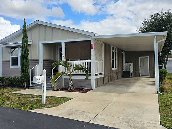 This top rated, all-ages community is perfectly situated in a prime location of tampa, around a gorgeous lake and features landscaped grounds and amenities for every age to enjoy! Soak up the sun in the community pool, take the kids to the gorgeous playground, or play some basketball at the basketball courts! The residents can also use the fully equipped fitness center, clubhouse with events, and laundry facility! --- This like-new 3-bedroom, 2-bathroom home is located on a desirable corner lot and offers exceptional curb appeal with inviting front and back porches. Enjoy peaceful mornings or relaxing evenings on the spacious back porch overlooking a picturesque pond with a tranquil fountain. Outside, the home features a 2-3 car covered carport and an attached storage shed for added convenience. Inside, you'll find an open-concept floor plan with gorgeous wood colored vinyl flooring throughout, drywall construction with rounded corners, and elegant crown molding for a refined touch. The kitchen opens seamlessly to the dining and living areas, featuring a large countertop bar, abundant cabinet and counter space, and matching black appliances - perfect for entertaining or everyday living. The home includes a separate utility room with washer and dryer, two comfortable guest bedrooms with ample closet space, and a spacious master suite. The master bedroom offers private access to the back porch and an ensuite bathroom complete with dual vanities, a walk-in shower, linen storage, and a generous walk-in closet. This stunning home combines comfort, style, and functionality in a peaceful setting - ready for you to move in and enjoy!---For more pictures, to place an offer or schedule a showing Call Chris Now! All listing information is deemed reliable but not guaranteed and should be independently verified through personal inspection by appropriate professionals. All Florida Mobile Home Sales Inc. cannot guarantee or warrant the accuracy of this information or condition of this property. The buyer assumes full responsibility for obtaining all current rates of lot rent, fees, and pass-on costs. Additionally, the buyer is responsible for obtaining all rules, regulations, pet policies, etc., associated with the community, park, or home from the community/park manager. All Florida Mobile Home Sales Inc is not responsible for quoting of said fees or policies. We do NOT Co-Broke or offer referrals to outside agents