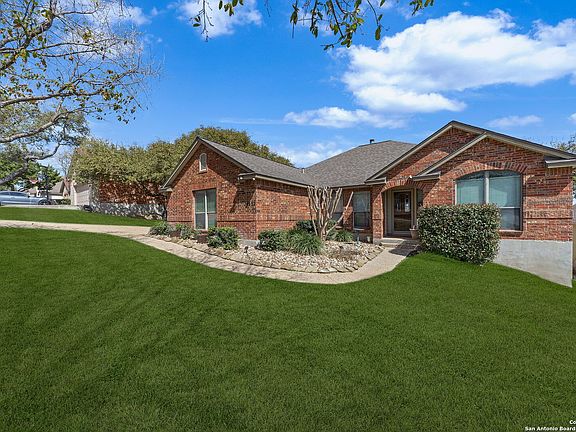 OPEN HOUSE SATURDAY, MARCH 15 FROM 12-3 AND SUNDAY, MARCH 16 FROM 1-4. Welcome to this beautifully designed single-story home nestled in the heart of Helotes in Fossil Springs Ranch. Combining comfort, elegance, and practicality, this home offers a truly inviting atmosphere from the moment you walk in. High ceilings and an abundance of natural light create an open, airy feel throughout the home. The spacious family room, featuring a charming brick gas fireplace, seamlessly connects to the chef-inspired kitchen. Here, you'll find 42-inch cabinetry, double ovens, generous countertop space, and a convenient butler's pantry/coffee bar that flows into the dining room-ideal for everything from casual dining to formal entertaining. A dedicated office provides a peaceful work environment, or it could easily be turned into a playroom or home gym. The huge primary suite is your private sanctuary, offering serene backyard views and stunning wood flooring. The en-suite bathroom is a spa-like retreat with a jetted soaking tub, oversized shower, marble flooring, and double vanities. Two additional bedrooms offer versatile space for family or guests. Outside, you'll discover nearly half an acre of private outdoor space, complete with a sparkling pool and extended deck-perfect for both entertaining or simply relaxing after a long day. This home is truly a gem with every feature you could desire. Don't miss the opportunity to make it yours-schedule your showing today!