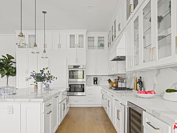 Elevated and tucked behind lush landscaping on 1/3-acre lot, 14522 Valley Vista offers nothing short of timeless elegance. Located South of the boulevard in the highly desirable Sherman Oaks community, this newly reimagined two-story traditional gem makes a grand impression. Walk through a dramatic formal foyer into this immaculately turnkey 4-bedroom estate, swathed in an abundance of natural light. With new white oak wood floors throughout, crown molding, farmhouse sink, and designer light fixtures and cabinetry, every detail has been tastefully accounted for. The chef-inspired kitchen boasts quartz marble countertops, stainless steel appliances including a dual oven, wood paneled refrigerator and custom white cabinetry with brass hardware- a perfect touch of character and sophistication. The main level offers an expansive open floor plan seamlessly integrated with the state-of-the-art kitchen, living and dining room areas, and a gorgeous main level corner suite with picturesque views. Three additional suites await on the second level, including an expansive primary which boasts vista views, walk-in closet and new spa-inspired bathroom complete with a freestanding tub, massive frameless glass shower and double vanity. The backyard features a resort-style pool, a private outdoor patio w/ fireplace, and a swanky office and gym; Ideal for that work from home lifestyle! Further upgrades to the home include new electrical, 2-pane windows, recessed lighting, new A/C, garage doors for 3-cars, exterior gates, pool heating unit, kitchen, all bathrooms, Nest and new flooring throughout. This traditional gem commands the upmost in luxury and wont last long! Enjoy Sherman Oaks living at its finest with proximity to chic dining and shopping.
