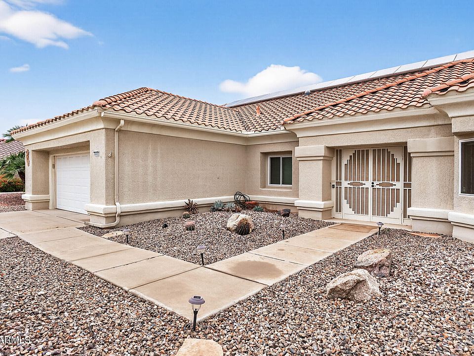 The view on the par 4 7th fairway on the magnificent Grandview golf course is enjoyable lovely, quiet and relaxing. Watching the golfers swing by on the outdoor patio lends itself to fun entertaining, easy flow for guest to move about and lots of yard space. The inside spacious living/dining room is livable, well lit and has beautiful views of the 7th fairway. The primary bedroom lends itself to a pretty view of the 7th fairway as well as the desert landscaping.