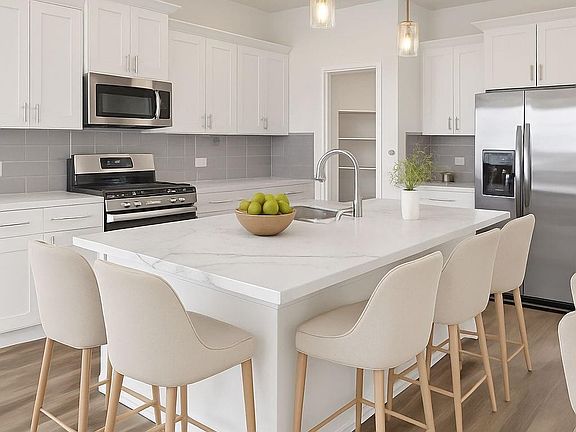 Quartz countersFenced backyardOpen-concept kitchenDual vanities