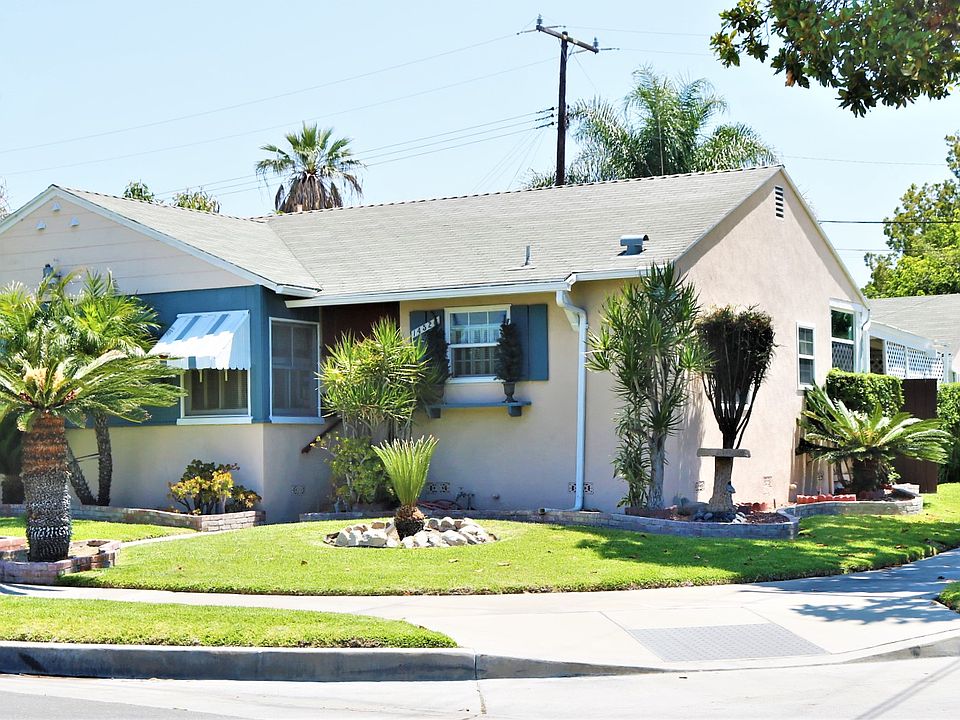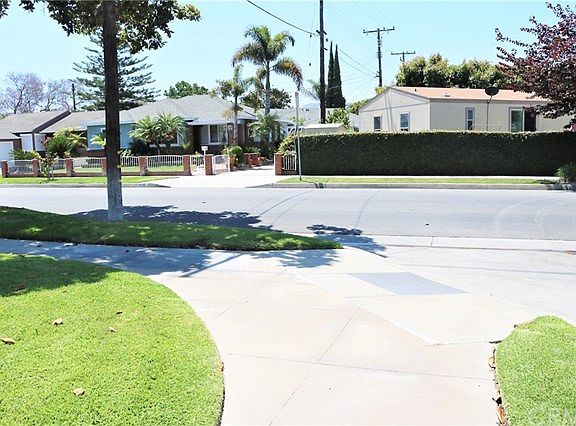 Located on a corner lot, this wonderful 3 bedroom 1 bathroom home is ideal for a growing family that loves to entertain. Featuring stunning curb appeal with palm trees and lush grass, the neighborhood is quiet and in close proximity to the local junior and high schools. Upon entering the home, there is a welcoming floor plan with an entry that leads to a tiled living room with a sliding glass door providing bright, natural light. The kitchen features tile counter tops, abundant cabinetry, nice dining area and attached laundry area for added convenience. Two bedrooms come equipped with ceiling fans, tile floors, while the master bedroom features a large closet with sliding doors for spacious storage. The living room leads to the covered patio for you to host gatherings for friends and family. A path of garden stepping stones leads you into a charming gated garden. Enjoy a few moments of tranquility in this private setting and notice a delightful avocado tree on your way out. The covered patio provides access to the two car detached garage. With a great location and numerous great features, this home will sell fast!