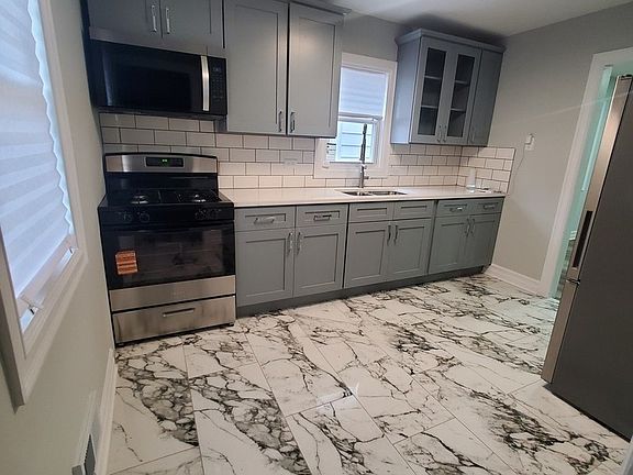 Welcome to this charming three-bedroom, one bathroom home that perfectly balances comfort with convenience. The traditional floorplan features a welcoming interior that is bright and sunny and boasts well-proportioned rooms. Step inside the gorgeous eat-in kitchen that has been modernized with beautiful appliances, shaker cabinets, and quartz countertop. Accented with sleek materials, the bathroom has beautiful fixtures, alcove tub, free-standing vanity, and ceramic-tiled flooring. The primary bedroom is located on the second level and spans the full width of the home, providing a spacious retreat where you can truly unwind. The combination of updated features and practical location creates a compelling package that's ready for immediate enjoyment. This charming and cozy home won't last long. We love this home. You will too. Call today.
