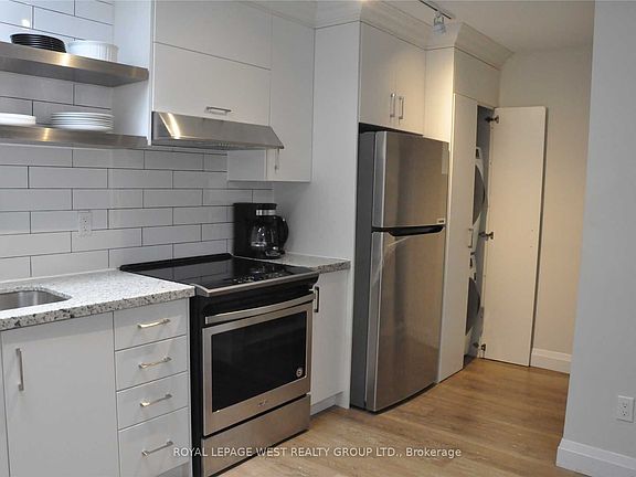 Modern 2 Bdrm Apt on the 2nd Flr Above Bike Shop. Has 3 Skylights & A Large South Facing Window In The Primary Bedroom, Large Enough For A King Bed. Kitchen Has A Built In Pantry/Bookshelf Opposite The Washer/Dryer Cabinet. Washroom Has A Deep Tub & A Towel Warmer For Those Cold Winter Days. Unit has 2 Staircases/Access points. Entrances both from Dundas and Back of Building. Smart Home Securiyt/Intercom w/Camera Screen Inside Your Unit to Grant Guest Access. Extra A/C Wall Unit. Back Entrance To Parking Spot. This Fully Equipped Unit Includes Heating And Water. Tenant Pays Hydro and Garbage tags.