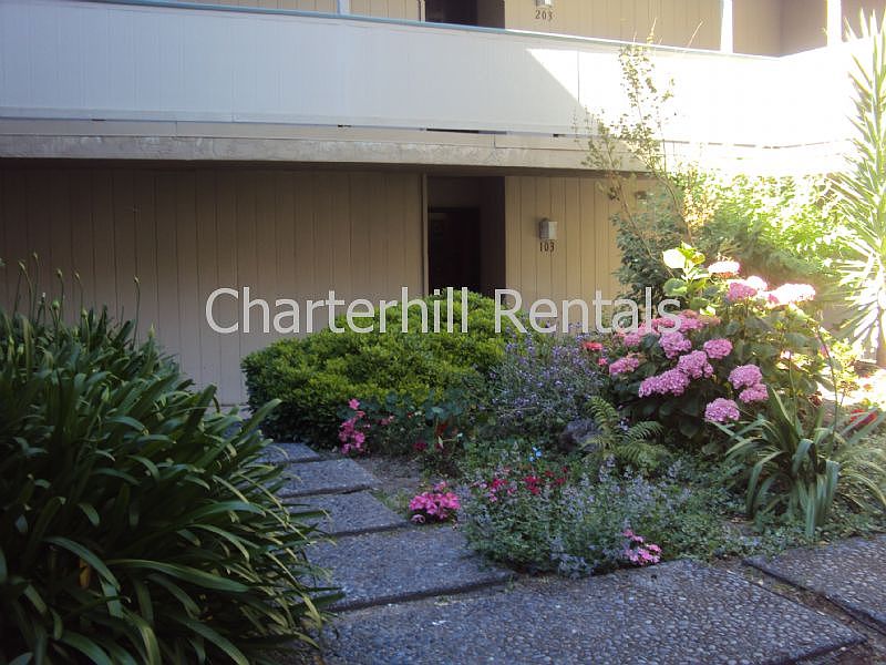 This lovely condo is in a quiet, peaceful complex and in a great location with a balcony overlooking the pool and greenbelt. New hardwood style laminate flooring in living room, new tile flooring in entry, kitchen, 1/2 bath, and laundry. Very spacious master bedroom includes a built in vanity area that could be a built in computer area --offering great flexibilty of space. Tons of linen closet space too. Spacious kitchen with newer appliances. Interior laundry hookups (washer and dryer are provided, but no warranted). The one full bathroom has access to both the hall and master bedroom. There is also a half bathroom near the entry. Sorry, but this condo is very firmly a no pets property. One covered, assigned parking space is provided in parking area under the building. Available April 3, 2015