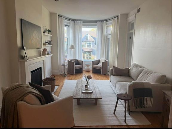 Beautiful 3-bedroom, 2-bath vintage graystone walk-up available for relet in the desirable Graceland West neighborhood. This spacious apartment features 12-foot ceilings, original moldings, hardwood floors throughout, a functional wood-burning fireplace, in-unit washer and dryer, free street parking, a large back patio, and additional basement storage. Located on a quiet, very friendly street within walking distance to Southport Corridor.