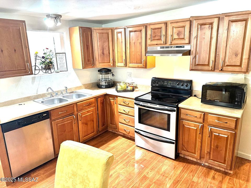 - Included: Dishwasher, Disposal, Electric Cooktop, Electric Oven, Electric Range, Exhaust Fan, Microwave, Refrigerator, Dryer, Washer, Water Heater: Electric, Appliance Color: Stainless