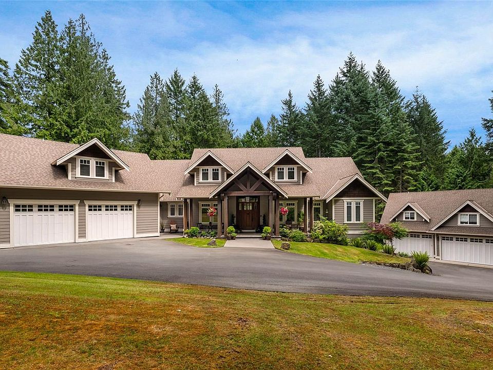 Escape to this private 3-acre West Coast estate offering 5,300 sq ft of finished living space in a peaceful natural setting just minutes from all amenities. This stunning home features six bedrooms and seven bathrooms, including a luxurious primary suite with walk-in closets and a five-piece ensuite. The spacious layout includes a gourmet kitchen with adjoining family room, formal living and dining rooms, a dedicated office, and an entertainment room perfect for gatherings. Relax in the outdoor hot tub, enjoy the convenience of two separate two-car garages, and host guests or generate income with the self-contained two-bedroom suite. Surrounded by walking trails, this property offers tranquility without compromise.