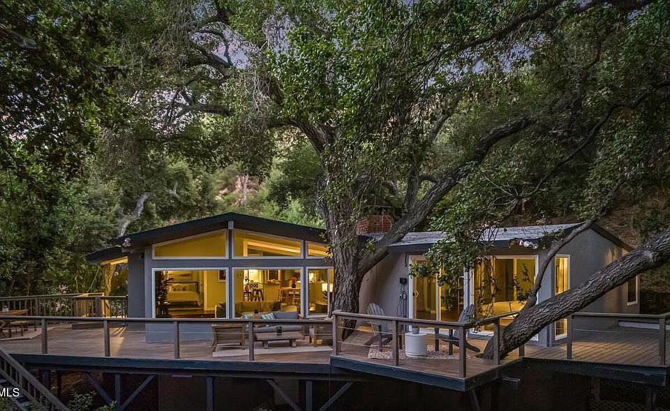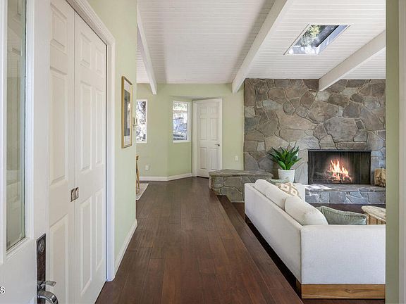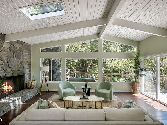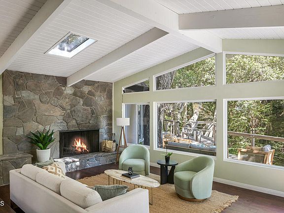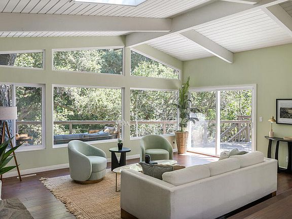 Unrivaled serenity and rare privacy await you at the end of a sleepy cul-de-sac in ever-popular Upper Linda Vista. Welcome to 1453 Wicks Road, a secluded architectural gem surrounded by nature's beauty. As soon as you enter, the home impresses with its grand living room showcasing vaulted exposed-beam ceilings, a skylight, and massive picture windows that frame stunning treetop views. Here, an afternoon cup of tea with a friend effortlessly extends into hours of conversation. Mornings begin with fruits and yogurt in the cheerful, open kitchen bathed in the first rays of sunshine streaming through the skylight, offering a moment of peace before the day picks up speed. Providing the ideal setting to recharge, the primary bedroom is a secluded oasis with its own fireplace and luxurious en suite complete with a soaking tub. As you awake, feeling incredibly refreshed, a private balcony invites you outside to breathe in the cool, fresh air and listen to the birds as they sing their cheerful songs. On lazy Sundays, the radiant sunroom offers the perfect place for you to delve into a good book. And, best of all, the wrap-around porch lets you doze off in your favorite chair beneath the towering shade trees in what feels like your own private forest. For outdoor socializing, the pergola and nearby stone patio, with a babbling waterfall and firepit, create the perfect setting for joyful get-togethers with dear friends. At 1453 Wicks Road, you and your home become one with nature.