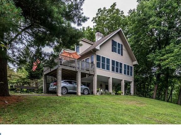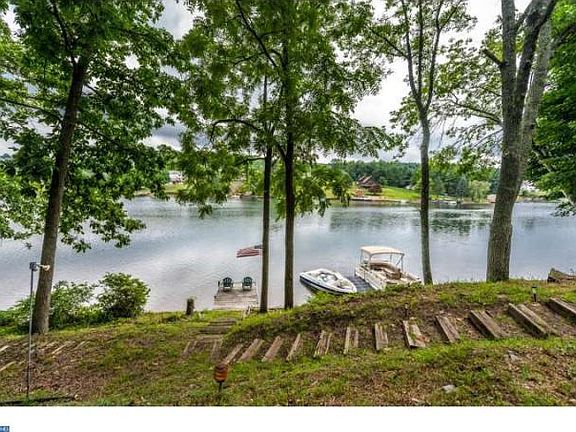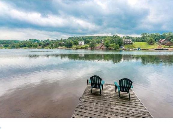 Stylish Lake Front Cape Cod on .98 acre lot with 140' lakefrontage with bulkhead and wood dock, on power boat lake. Custom Cherry Stained Maple kitchen cabinetry with new granite countertop, new stainless steel appliances, breakfast bar and tile flooring. Great Room has beamed ceiling, hard wood flooring and gas fireplace. Inviting 4 season room with beautiful lake views. Spacious L shaped rec room in lower level has a fireplace with pellet stove insert and wet bar for entertaining. Approximate 3400 sq ft of finished living space. Beautiful flowering trees and fruit trees on property. Inground Septic System. Road for ATV going down to waterfront. Stairs on left side of property for access to lakefront. Parking under deck. Lakefront Lot 1451 with 3 bay car garage w/ 2nd floor, is available for sale with home property for $489,000.