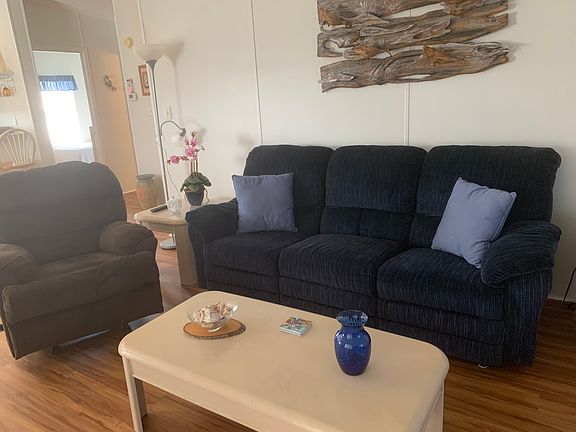 Welcome to this charming 2002 Palm Harbor home, offering comfort, updates, and plenty of appeal! Featuring 2 bedrooms, 2 bathrooms, and a lovely lanai, this home is move-in ready and fully furnished for your convenience. Enjoy peace of mind with major updates already completed a new roof (2021), new air conditioner (2022), and a new dishwasher and washer/dryer (2022). You'll also love the newer vinyl flooring in the dining and living areas, adding a fresh, modern touch. Tucked away in a quiet cul-de-sac, this home offers extra privacy while still being part of a vibrant and welcoming community. Come visit Vizcaya Lakes we'd love to show you around and help you find your perfect place to call home!