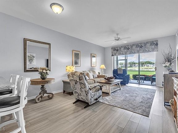 Charming first floor Golf Membership condo with amazing Golf course views!! This beauty is in the desirable neighborhood of Farrington/Wellington and nicely situated close to the cul-de-sac and only steps to the pool and Clubhouse!! Beautiful Quartz counters in the kitchen with knock down of the barstool area for expansive counter space. French door refrigerator, double deep ss sink and custom backsplash, new carpet in both bedrooms and laminate flooring in the living room, water heater in 2023, large master bedroom with bump out, seamless glass shower door, updated light fixtures and nicely painted and decorated in a coastal theme. Sit back on your relaxing tiled lanai while enjoying spectacular golf views of two holes and the water, along with amazing sunsets!! You're sure to have peace of mind with remote controlled storm shutters on your lanai. Wait there's more.. This beauty is being offered Turnkey and ready for immediate occupancy!!The Legends is a prestigious private country club w/ a 30,000+ sq ft Clubhouse offering fine dining, a casual sports pub & a stunning outdoor Sunset Grill!! Tons of amenities to choose from such as tennis, championship golf, bocce ball, pickle ball, a huge lagoon style pool w/ a waterfall & an exercise facility w/ plenty of classes to choose from. Low carrying costs w/ no cart/green fees & low taxes. Resort Style Living to it's finest, move in ready and waiting for you to call it home!!