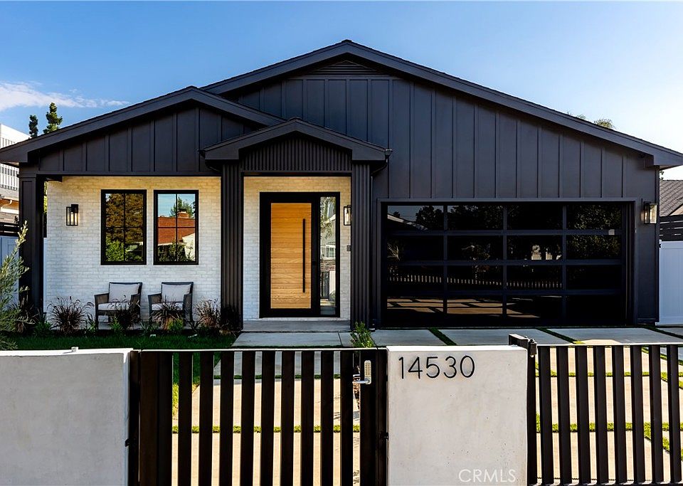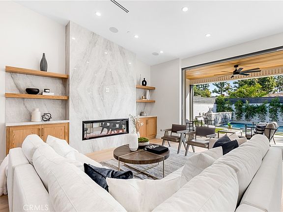 Welcome to this new construction contemporary home nestled in the heart of Sherman Oaks. This highly desired single story home features 10 foot ceilings, wide plank wood floors and an open concept main living space with vaulted ceilings. The spacious family room has a stunning porcelain bookmatch fireplace and pocketing door that disappear into the wall, extending your living space outdoors. An open concept dining room separates the family room from the gourmet kitchen which boasts top-of-the-line appliances, two-tone white oak cabinets and bookmatch counters/backsplashes. The primary suite consists of a large walk-in closet and spa-like bath that features a soaking tub, rainfall shower system and dual vanities. Additionally there are two ensuite bedrooms with walk-in closets and a front bedroom that can be utilized as an office/den. The backyard oasis comes complete with a sparkling pool/spa that boasts a serene waterfall feature, covered patio with a gorgeous cedar plank ceiling and outdoor BBQ area with a fridge and built-in seating. Top-notch amenities include a Control4 smart home system, speakers throughout, a wine wall, laundry room, two car garage and gated front yard/driveway.