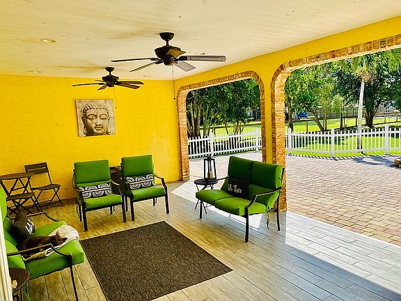 Turn-key home with professional landscaping. Spacious split floor plan. Covered, fenced patio. Completely updated with open living room and kitchen. Master features a spa bath and a huge built-out closet with storage drawers and built-in office. Energy efficient with impact windows and rain glass front door. All LED lighting. Fully fenced backyard with 1,500 sf utility building for shop, barn, yoga studio, or exotic car or boat storage. Bring your toys, animals and enjoy! Wildlife habitat, mango orchard, and lots of coconut trees. The driveway is long and can accommodate 12 cars for get-togethers. Close to I-595, I-95, and Fort Lauderdale Airport. A must see!