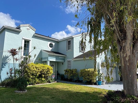 Two story lakefront home with dramatic high ceiling in living/dining area, separate family room and eat in area by the big kitchen with quartz & wood cabinets. Gorgeous custom lagoon pool rimmed with keystone, color lights and a spillover spa. Oak stairs to upstair hall of Brazilian cherry. All bedrooms are upstairs- primary bedroom is huge, with a separate dressing area ,large bath, walk in closet, and an attached office/nursery. 4th bedroom is office off the master. All windows / sliders have wind protection- impact glass or accordion shutters. Lovely wide lake view has a lighted fountain. Double garage. Inside laundry. Community offers huge pool, tennis court and pickleball courts -$73/mo fee- within walking distance to Claude Pepper elementary and Sugarwood park.