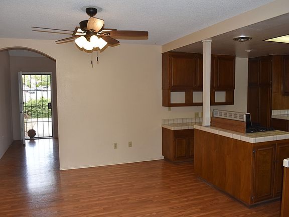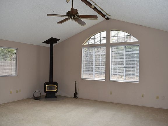 This 3 bedroom 2 bath home features formal living room, dining room, oversized family room and large fully fenced rear yard. Living room features vaulted ceilings with floor to ceiling stone fireplace. Dining room off of kitchen with ceiling fan, 2 skylights and French doors leading into large family room. Kitchen features new 5 burner gas stove with passthrough to family room. Family room features vaulted ceilings, track lighting, wood burning stove and sliding glass door to rear yard. Hall bath features tub/ shower combo. Master bedroom features walk in closet and attached master bath with fully enclosed stall shower. Large fully fenced rear and side yards with new artificial turf area, new bark and drip irrigation. Home features whole house fan as well as central heating and air. Washer and dryer hookups in attached 2 car garage. Can accommodate both gas and electric dryers. Front driveway can accommodate 3 vehicles. Walking distance to Silverset Park and minutes away from Walmart and numerous other shops and eateries.